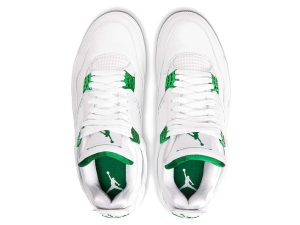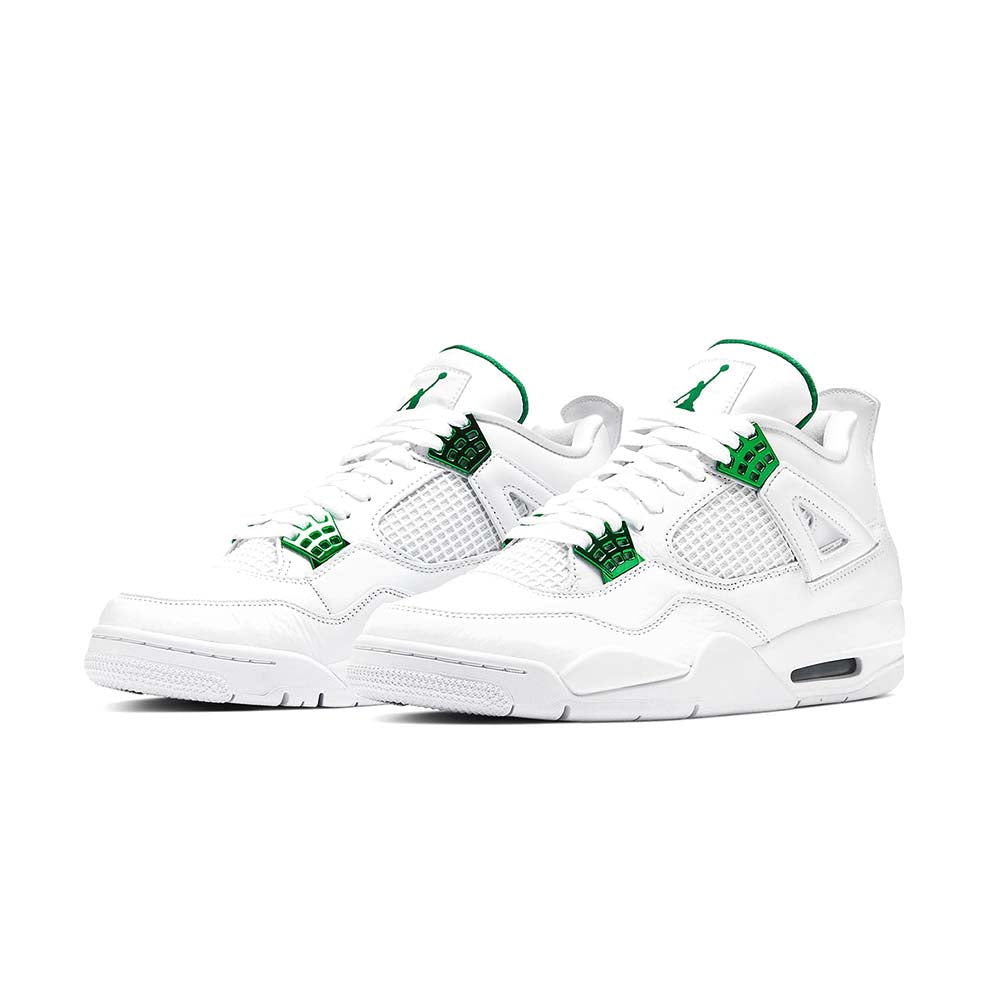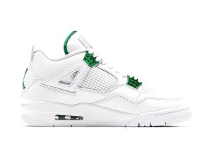 Jordan Brand pays homage to one of its first colorway themes with the Jordan 4 Retro Metallic Green, now available on StockX. In 1985, the Air Jordan 1 was the first in its lineage to receive the “Metallic” treatment. Four metallic colorways originally released – including red, orange, purple,
