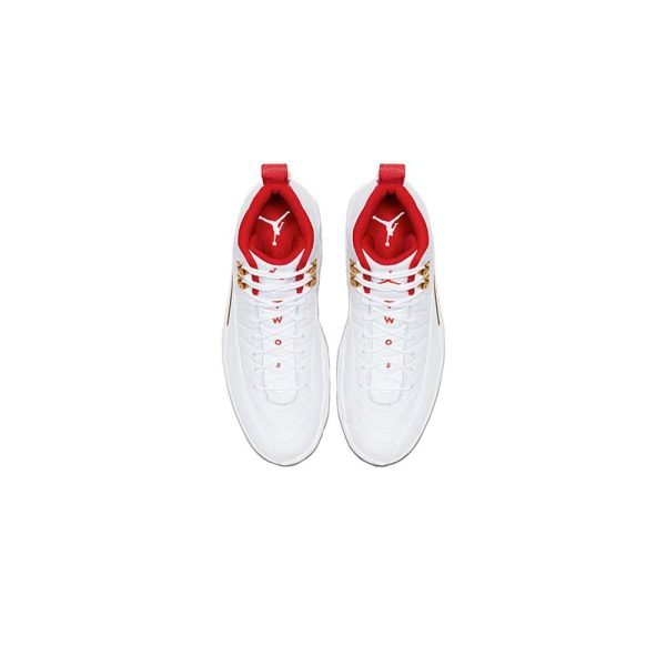 Jordan Brand welcomes with 2019 FIBA Basketball World Cup with the Air Jordan 12 “FIBA”, now available on StockX. FIBA (Originally known as the Fédération Internationale de Basketball Amateur) is an association of national organizations which governs the sport of basketball worldwide. Every four years, nations that are members of this organization compete for the World Cup. In 2017, Nike partnered with FIBA to become the official sponsor of the organization so it is fitting that Jordan pays tribute with this colorway. This AJ 12 is reminiscent of the existing “Rising Sun” colorway except it differs by displaying red detailing with gold accents. This design features a white leather upper detailed with different symbols from flags. Chinese text on the heel tab and the signature “TWO 3” embroidery on the tongue completes the design.