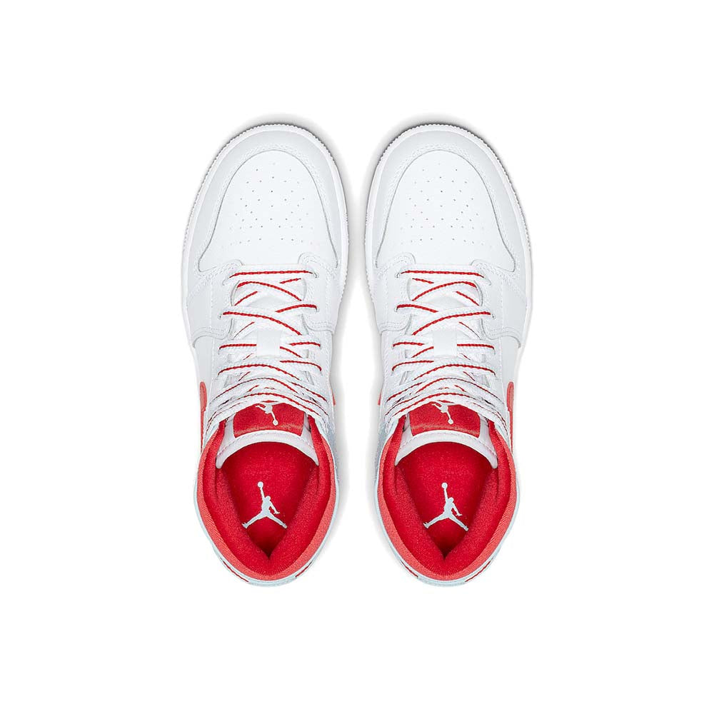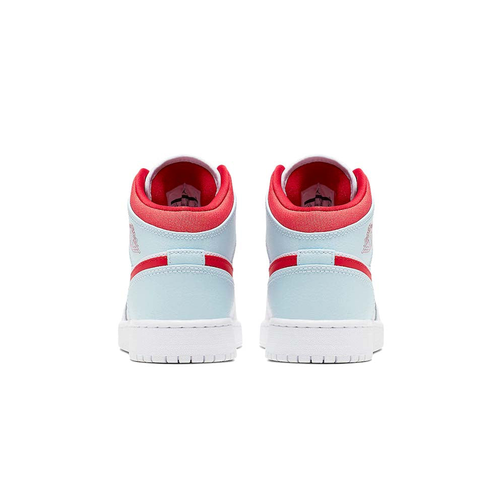 The Air Jordan 1 Mid GS sneaker is inspired by the legendary original that stepped into the arena in 1985. Revealed in April 2019, this ‘Topaz Mist’ kids’ release takes a fashion-forward step in a grain leather upper with modern color blocking splitting the counter and collar. Bold Swooshes, Wings branding and lace stripes give off sporty energy. The Air-Sole and concentric rubber outsole remain constant.