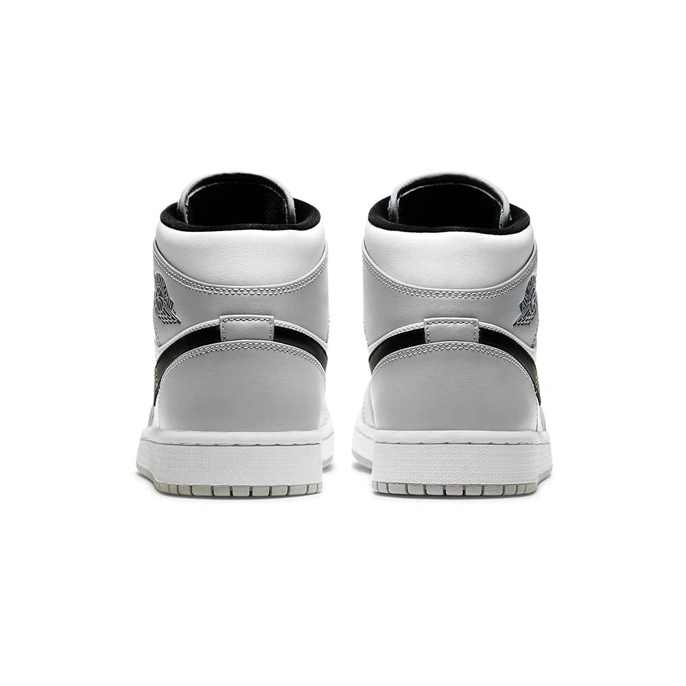 The Air Jordan 1 Mid “Light Smoke Grey” finds Michael Jordan’s first signature shoe in mid-top form in a shadowy, ultra-versatile color scheme. The Jordan 1 Mid has gained popularity in sneaker culture for its unique mid-top shape and range of desirable colorways. Both aspects come into play on the “Light Smoke Grey” colorway. White leather forms the base of the upper, appearing on the perforated toe, mid-panel, and collar. Light Smoke Grey leather overlays can be found on the forefoot, eyelets, collar, and heel. A black leather Swoosh is located on each side and black “Wings” branding dots the collar. Jordan Brand finishes off the look of this subdued design with a grey nylon tongue, black laces, and black nylon tongue tab with grey Jumpman detailing.