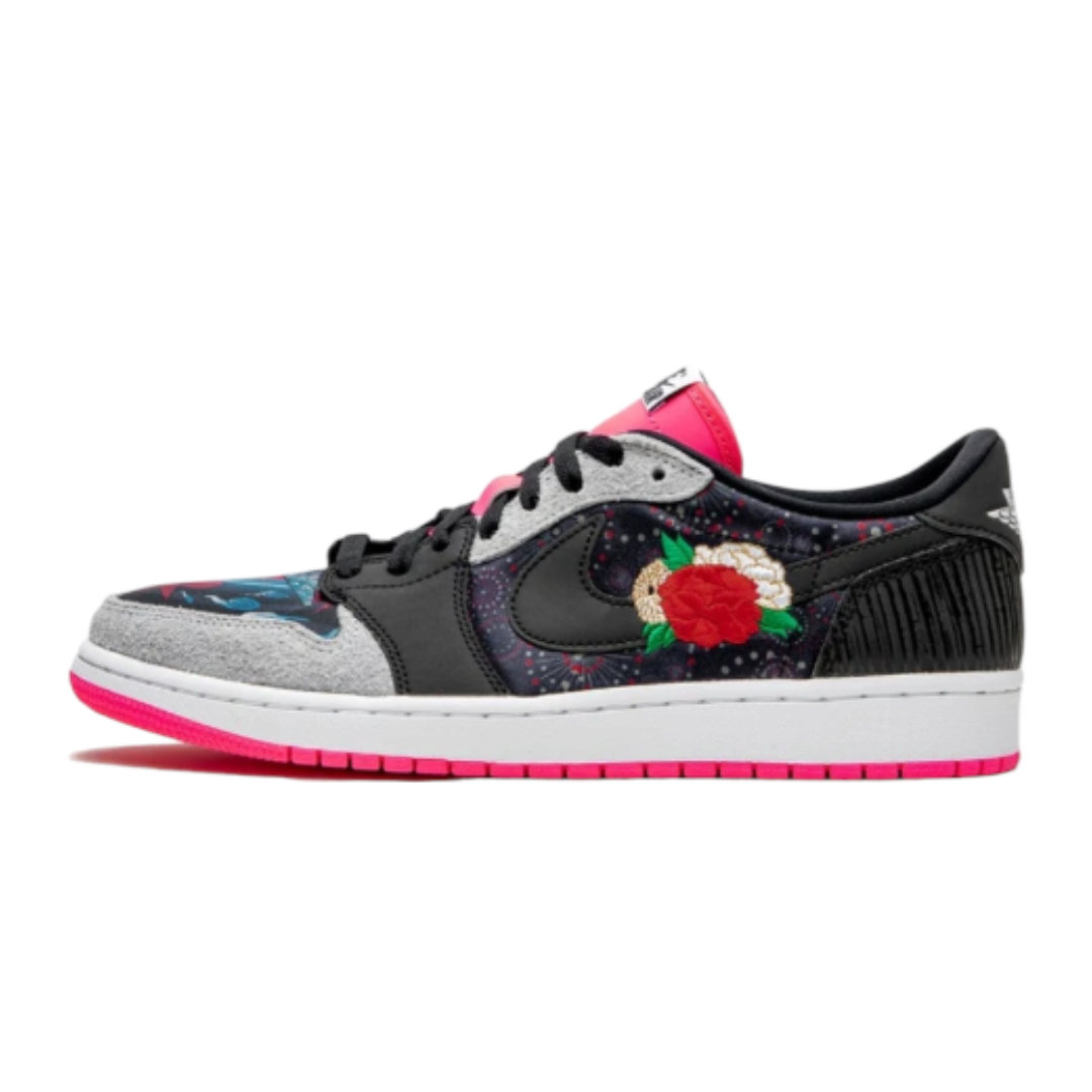 The Air Jordan 1 Low “Chinese New Year” will join the Air Jordan 13 to take part of Jordan Brand’s annual CNY collection that will be releasing in February 2020.This offering of the Air Jordan 1 Low features different Chinese graphics on the toe and side panels paired with embroidered roses on the medial Swoosh as well as on the toe of the right shoe. Pink contrasting accents on the tongues, lower lace cage and lace tips with “Nike Air” branded tongue labels, Black Wings logo on the heels and 3M reflective detailing completes the design.