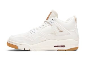 The Air Jordan 4 Retro Off-White Sail features a monochrome upper with an ultra vintage feel. The cream coloured leather base is combined with a gridded side cage and some synthetic elements such as the Wings and the frosted TPU heel. The usual ” SHOELACES ” lettering on the laces and ” AIR ” above the air bubble are added as a signature, as are the Off-White and Air Jordan tags attached to the laces. Finally, frayed seams and an ankle collar that seems to have no trim finish off this silhouette, which is all about relief and the play of materials.With a completely different design from what Virgil Abloh has been offered so far on its sneaker collaborations, the Air Jordan 4 Retro Off-White Sail is sure to spark the interest of the community.