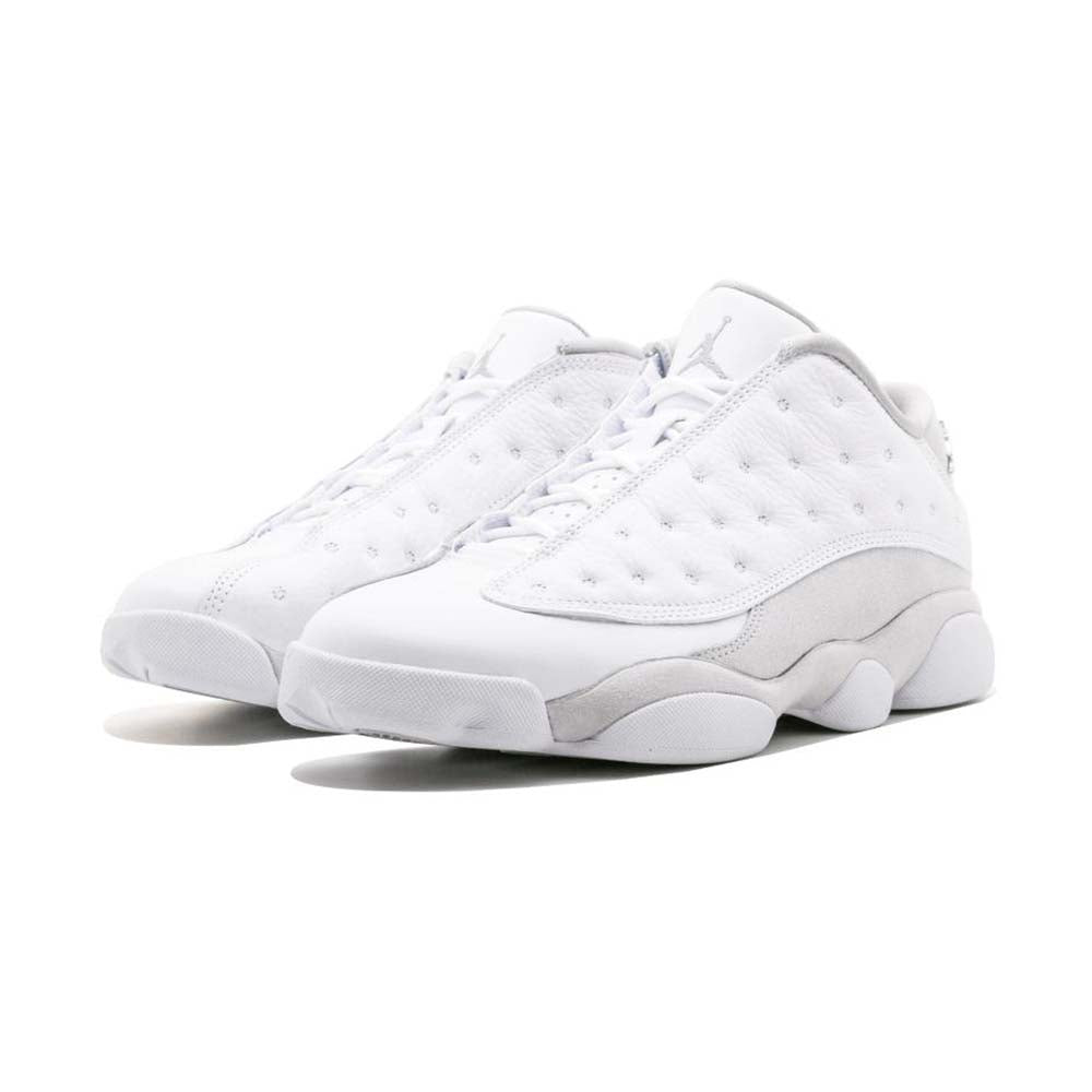An icy white shoe option can always do your collection good, especially during the summer months. Enter the Air Jordan 13 Retro Low in the Pure Platinum colorway. As the nickname infers, we see the classic silhouette sport a pristine look. Credit that to an upper constructed with premium white tumbled leather on the toe and dimpled side panel. The mudguard features a clean suede in Pure Platinum that gives the design a simple, yet luxurious feel. The inner lining features the same colorway. Additional Jumpman branding appears on the heel in Metallic Silver to complete the slick Air Jordan design.